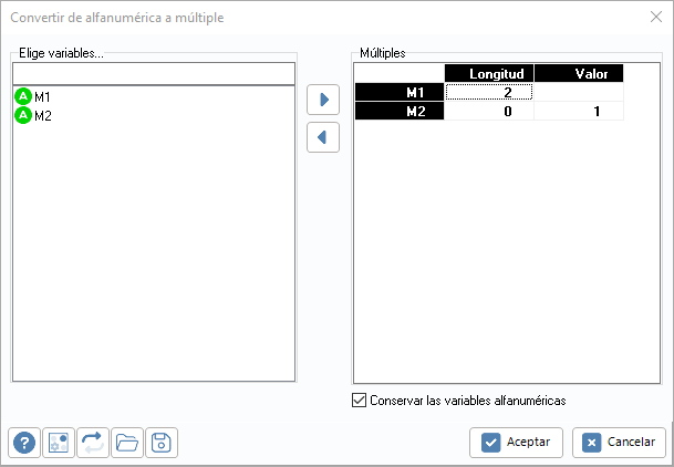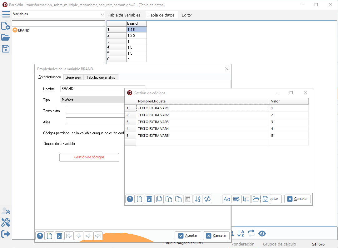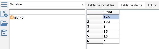 Dónde se puede observar como se ha creado la múltiple, y los códigos de ésta son los textos de las variables individuales. Alternativamente, estos pueden ser generados a partir de la información del código 1 de cada variable individual.