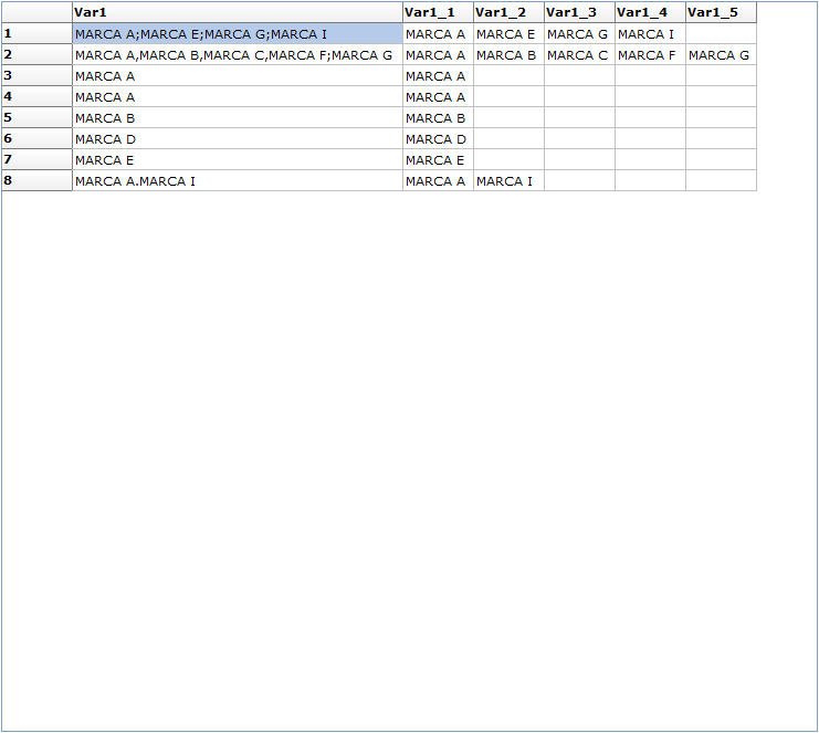 - Divide una variable múltiple en tantas variables de categoría como códigos tenga la variable múltiple original. Se pierde el orden de respuesta de la múltiple.