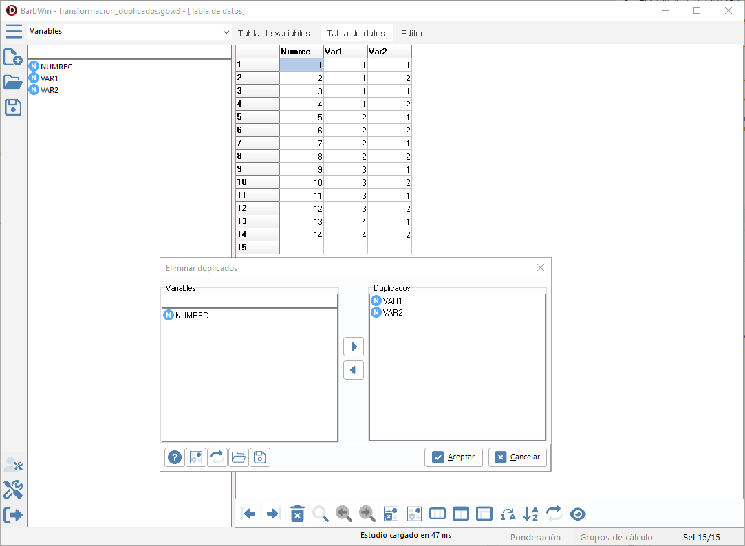 por último, si clicamos en Código 1/2, permite que en lugar de ser 0/1 sea, 1/2 los valores de las variables. Este criterio puede combinarse con los dos anteriores.